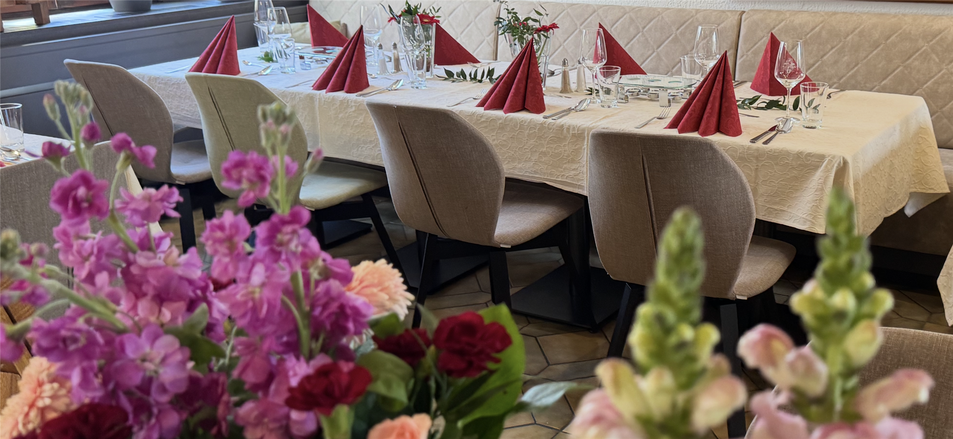Restaurant mit Wein- Biergarten (Wetterabhängig) :